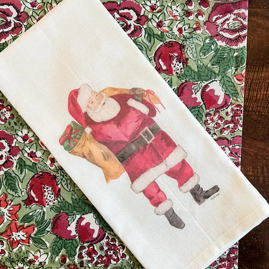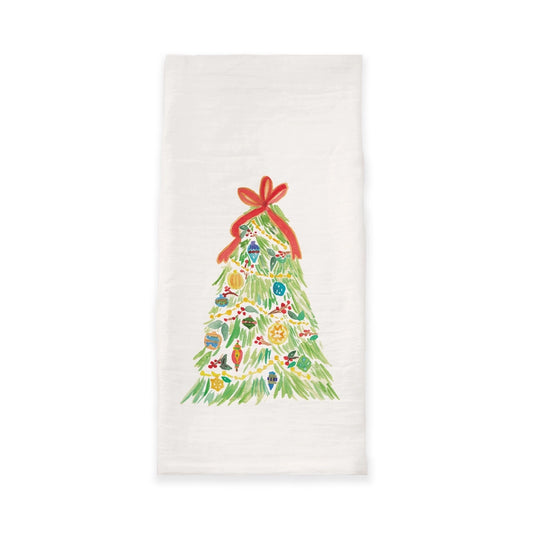 Chinoiserie Christmas Tree Towel, Blue Holiday Kitchen Decor