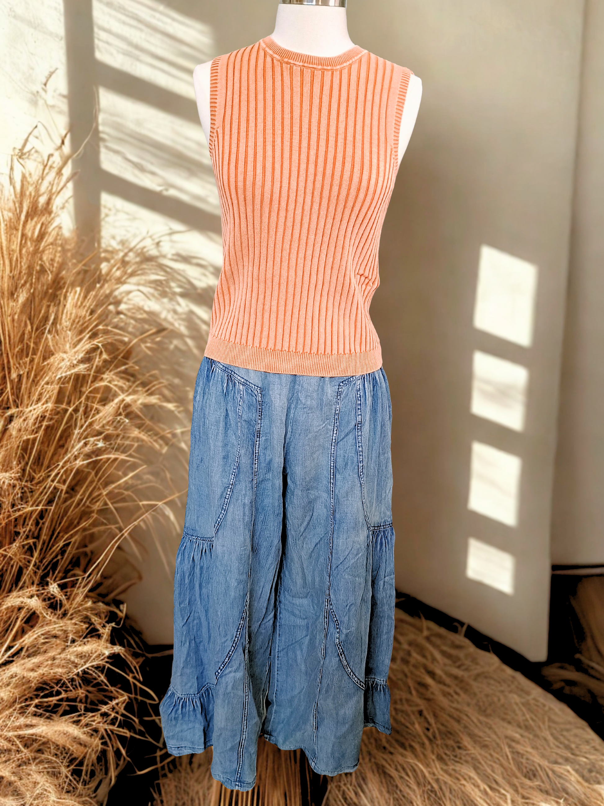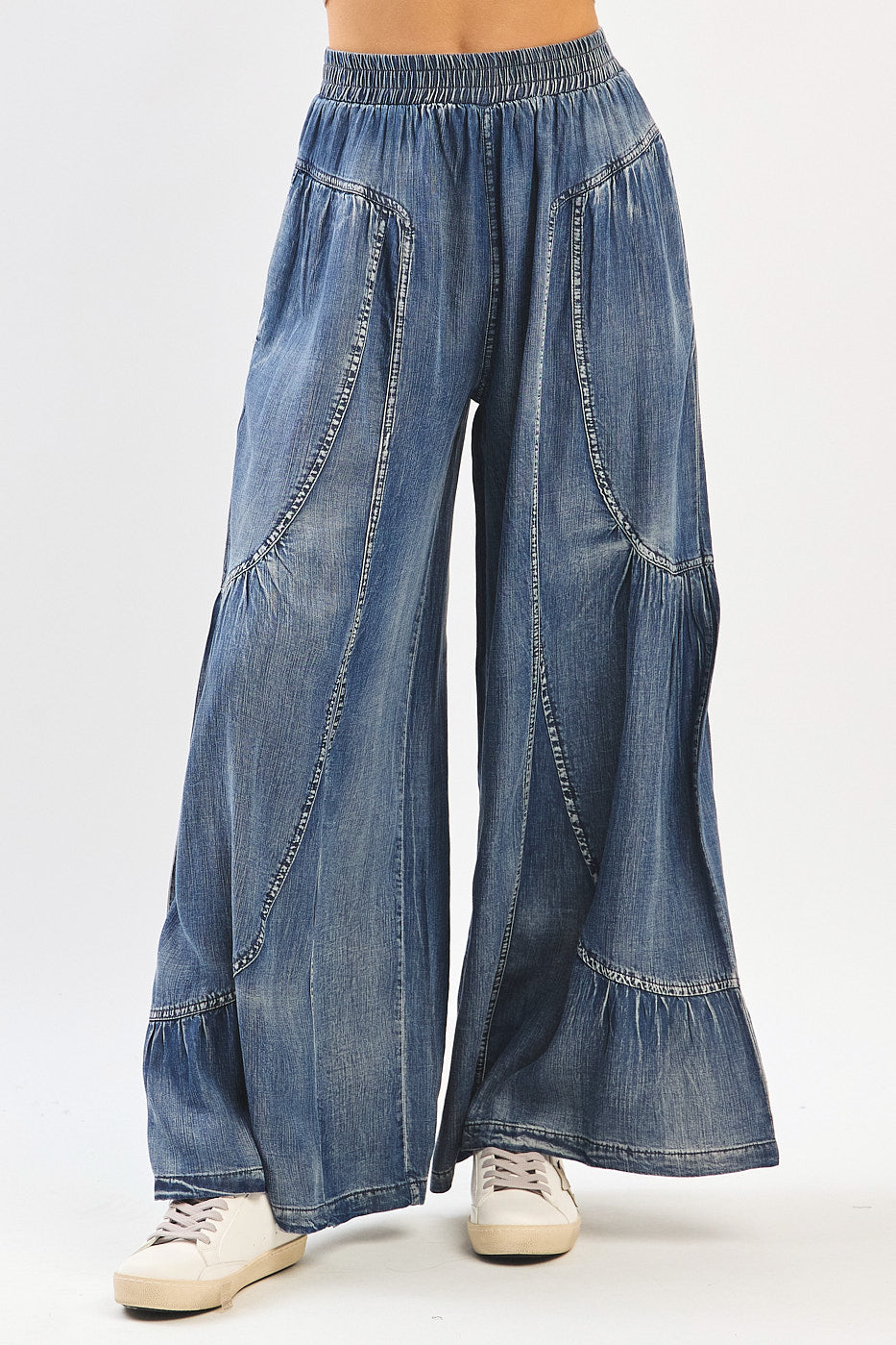 Step into playful comfort with the Celeste Bottoms, designed to brighten your day with their large flare and charming ruffled edges. The elastic waistband ensures a perfect fit for all-day ease, while the lightweight fabric keeps you feeling fresh whether you're out and about or relaxing at home. Plus, handy pockets add a touch of practicality to this fun, flirty style. Ideal for adding a whimsical twist to your wardrobe, these bottoms combine breezy comfort with a splash of joyful flair.