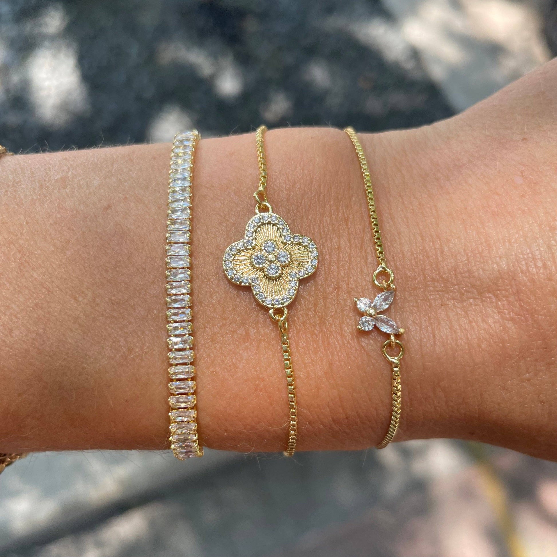 This crystal 4 leaf clover bracelet is so sweet and dainty!