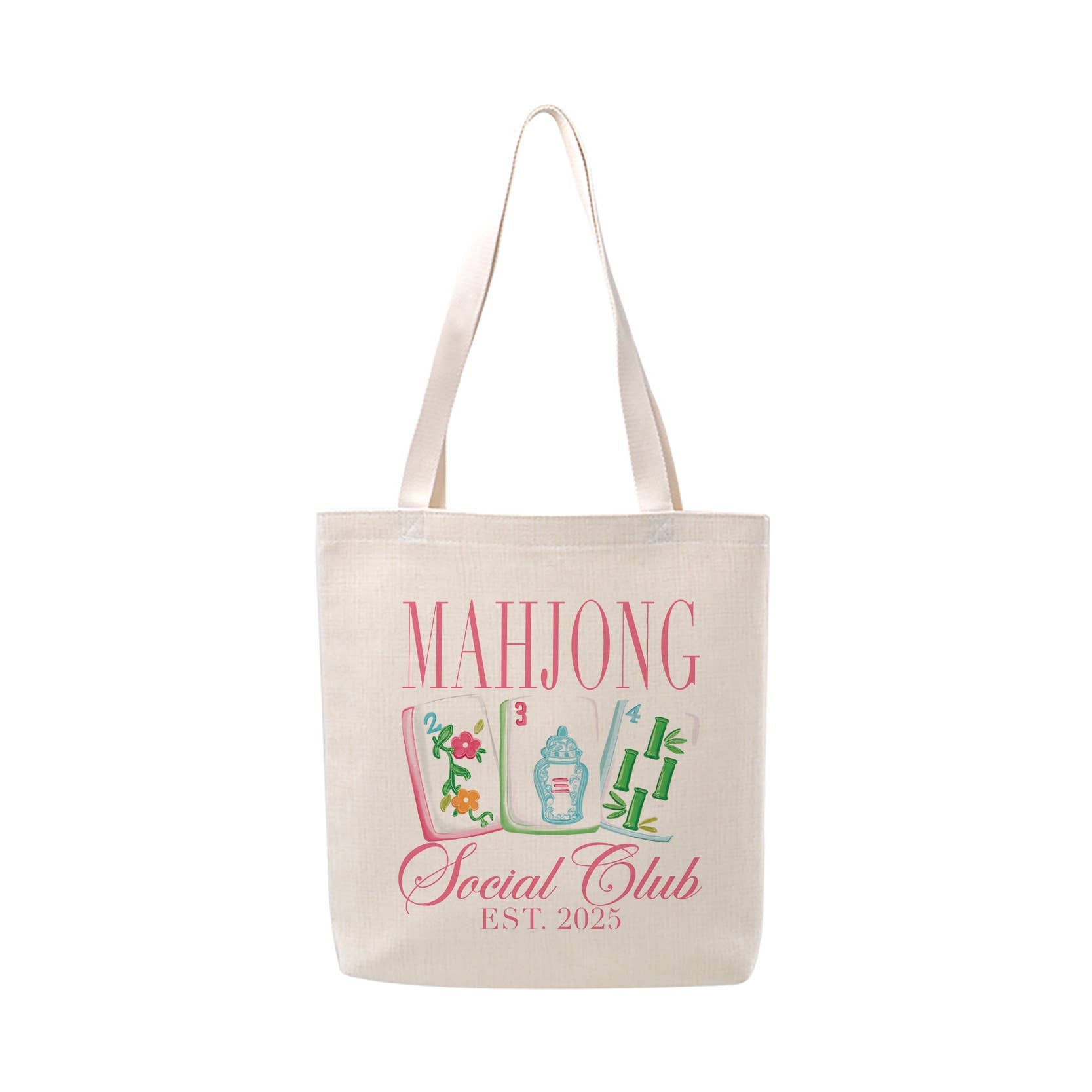 Mahjong Social Club Tote Bag Preppy Mahj Tiles Canvas Bag