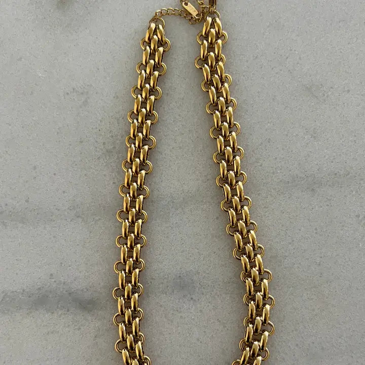 The Maya Necklace is a finely crafted gold-tone piece designed to offer both elegance and versatility. Its water-resistant construction ensures lasting beauty and resilience, making it suitable for everyday wear without worry. The adjustable length, ranging from 16 to 18 inches, provides customizable fit options to complement various necklines and styling preferences. With its sleek design and durable finish, the Maya Necklace serves as a sophisticated accessory that effortlessly enhances any outfit, from casual ensembles to more formal occasions. This necklace exemplifies expert craftsmanship and timeless appeal for a refined jewelry collection.
