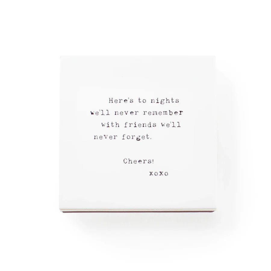 - Here's to the nights we'll never remember with friends we'll never forget. Cheers! xoxo