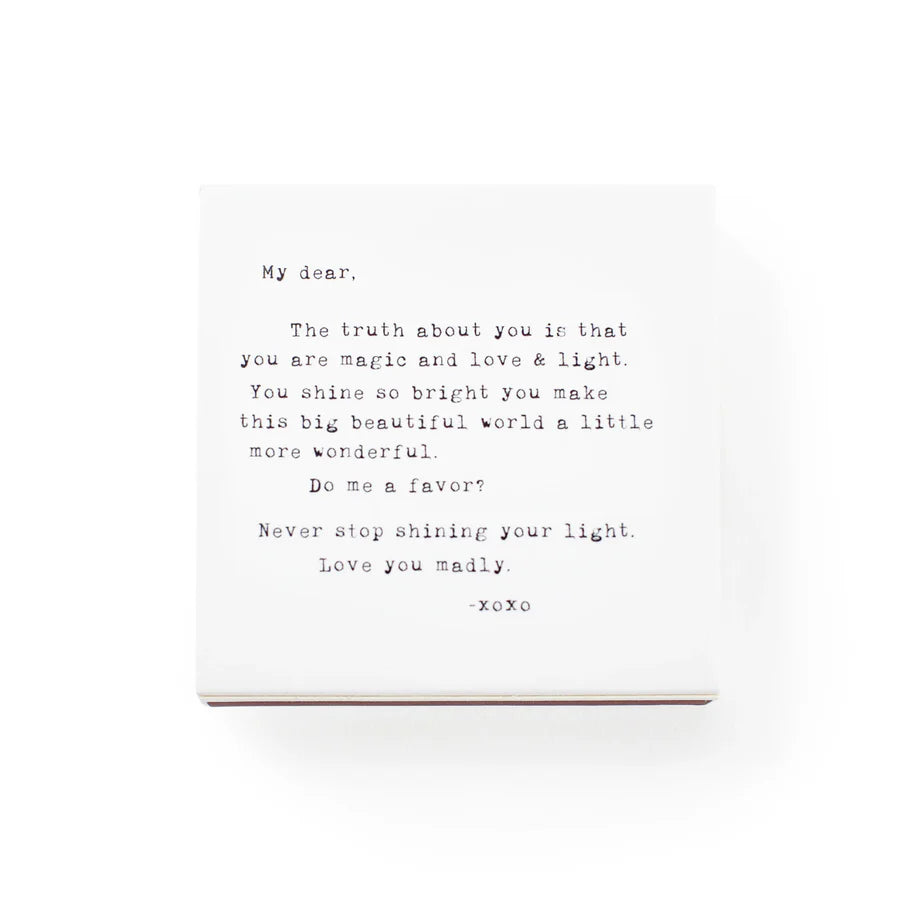 - My dear, the truth about you is that you are magic and love & light. You shine so bright you make this big beautiful world a little more wonderful. Do me a favor? Never stop shining your light. Love you madly. xoxo
