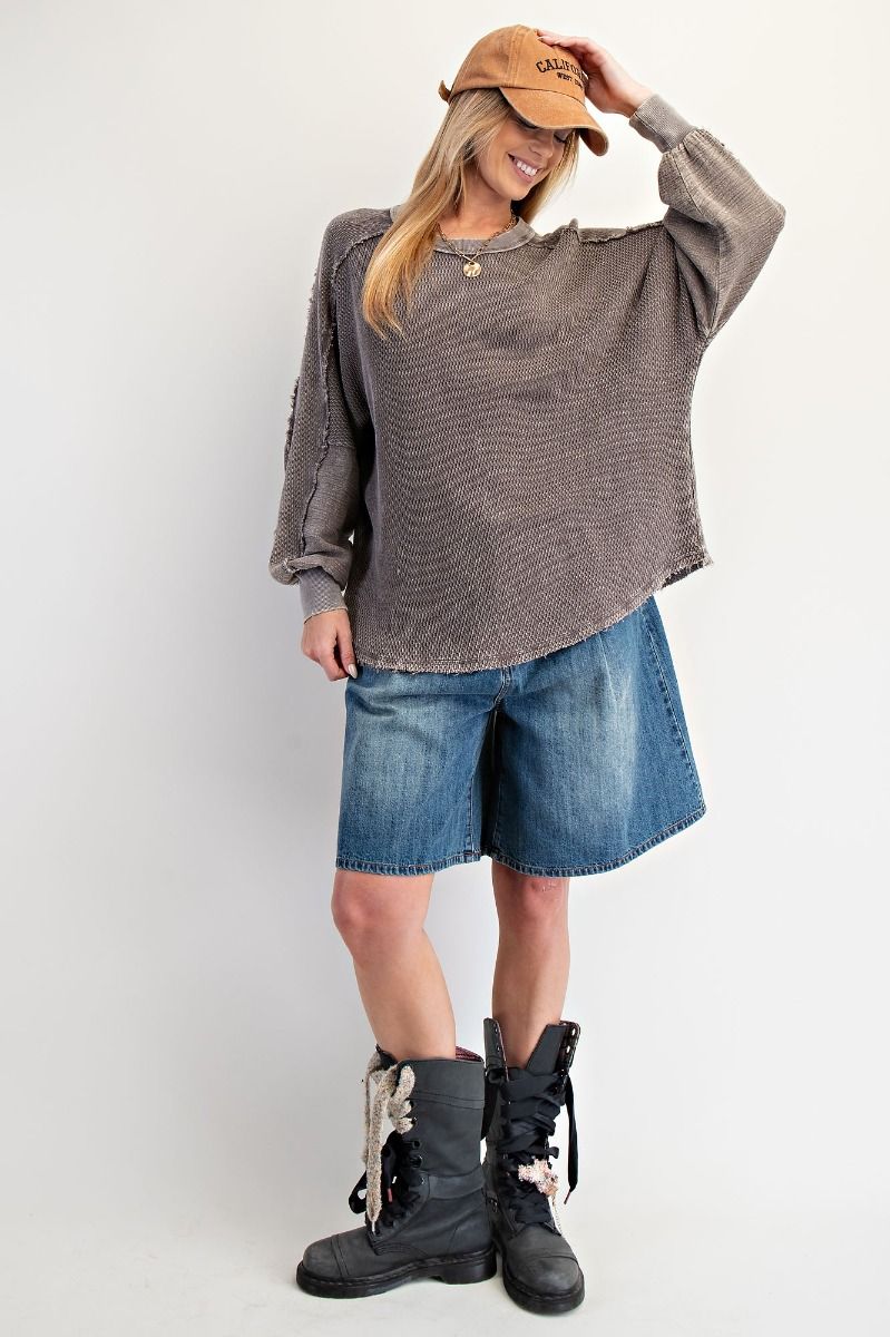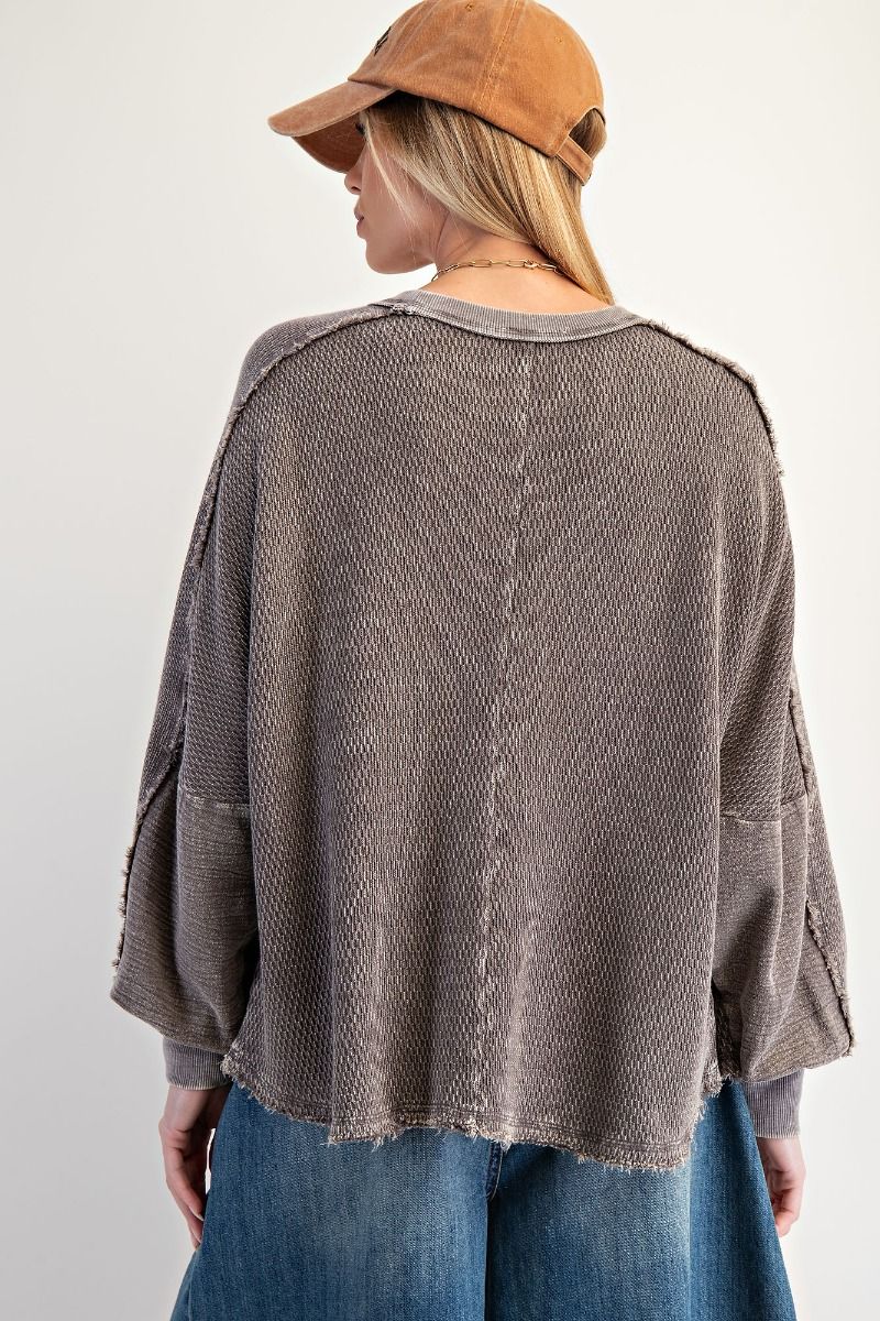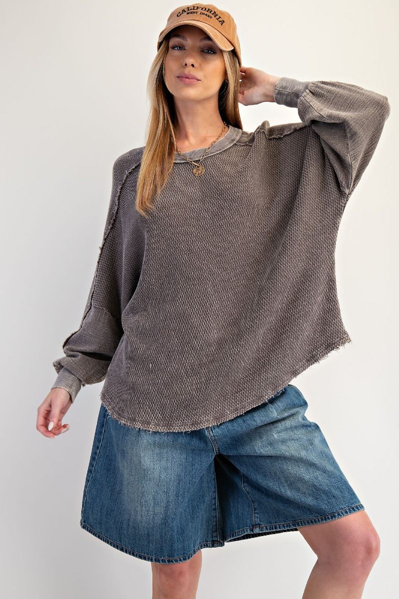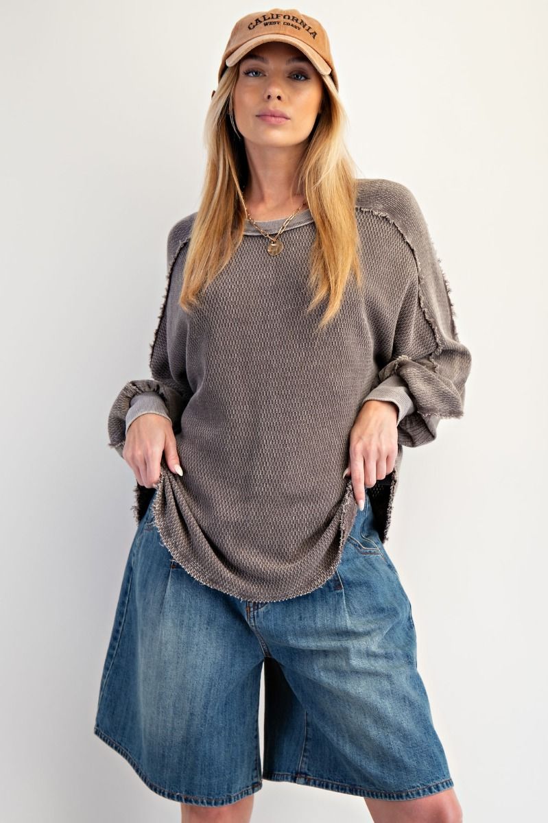Cozy up in the Sonny Top, a textured, washed thermal pullover that's all about that laid-back vibe. Featuring a relaxed, oversized silhouette with dropped shoulders and a waffle knit texture, this crew neck essential feels as good as it looks. Crafted from 100% cotton, it's the perfect layer for casual days when comfort is non-negotiable.