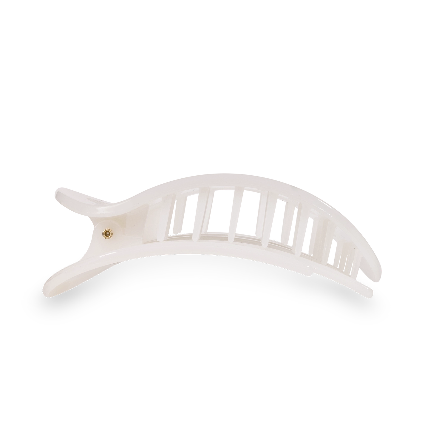 Forget uncomfortable hair clips that dig into your head when you're trying to relax. The TELETIES Coconut White Small Flat Round Hair Clip lets you lay back, do yoga, or lounge in your favorite chair without a care. Its bendable teeth grip gently yet securely, while the nearly unbreakable material keeps up with your active lifestyle. Lightweight and hair-friendly, this clip works beautifully for thin to medium hair—whether you're styling it up or rocking a half-down look. Wear it from sunrise to sunset without thinking twice.