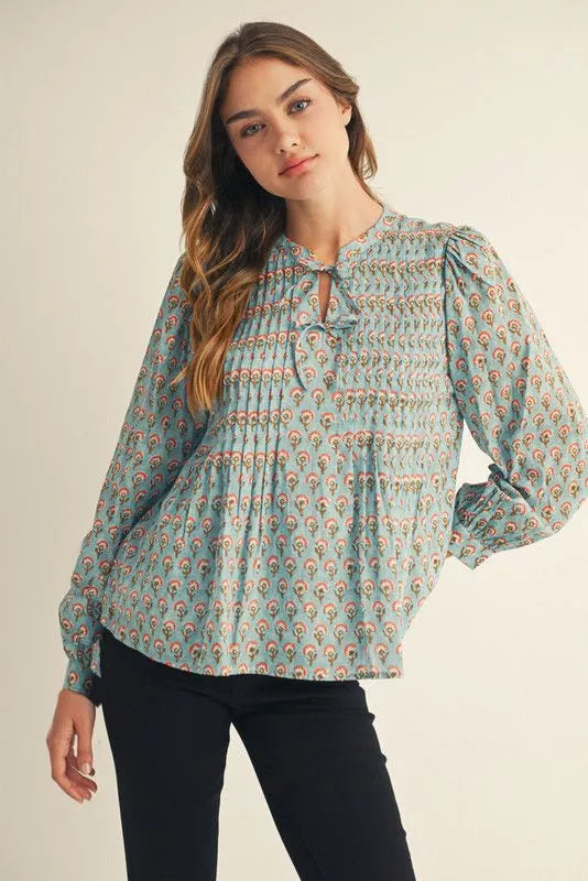 Introducing the Toni top—your new go-to for effortless charm! This delightful long-sleeve beauty features a dainty floral print that whispers romance, while strategic front pintucks add just the right amount of texture and dimension. The playful front tie cinches your silhouette with a flirty touch, making it perfect for dressing up or keeping it casual. Whether you're heading to brunch or a cozy night out, the Toni top brings personality and polish to any outfit. Comfortable, cute, and undeniably you.